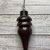 Das Pendel ist unten offen (Einkerbung/Spalte), in die man kleine Steine, Zettel oder ähnliches zum Pendeln hineingeben kann.